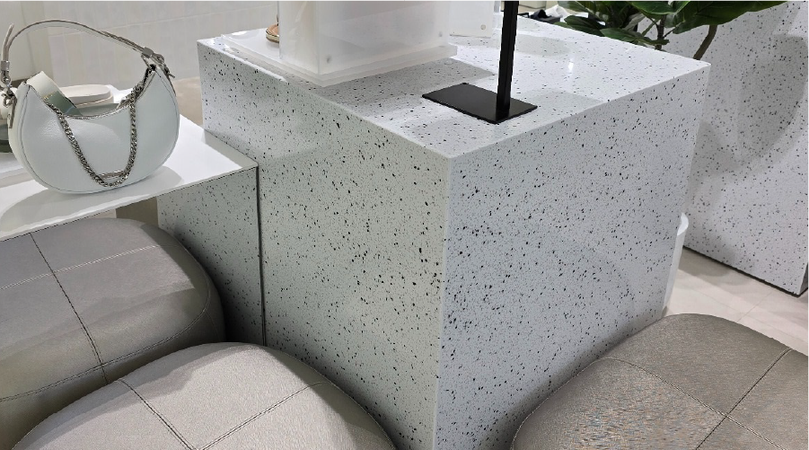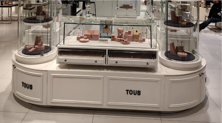 Las islas fueron concebidas como puntos de contacto funcionales y estéticamente impecables, mientras que las estanterías permiten una visualización clara y jerarquizada del portafolio. Los logotipos retroiluminados agregan un toque moderno y distintivo al espacio, asegurando una presencia visual fuerte tanto en tiendas como en puntos de alto tráfico.
