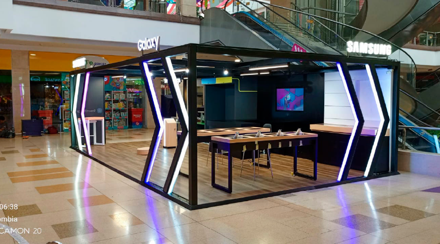 En este proyecto desarrollado para la marca Samsung, llevamos a cabo el diseño, producción e instalación de un stand de gran formato ubicado estratégicamente dentro de un centro comercial. La estructura principal fue construida en metal de alta resistencia, garantizando durabilidad, presencia y una estética moderna alineada con la identidad tecnológica de la marca.
