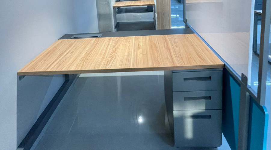 Optamos por una paleta de acabados en madera natural, utilizada tanto en superficies de trabajo como en detalles estructurales, para aportar calidez visual y un toque orgánico al entorno. Las estaciones de trabajo fueron diseñadas con líneas limpias y divisiones bajas, lo que permite mantener una sensación de amplitud sin sacrificar la privacidad.